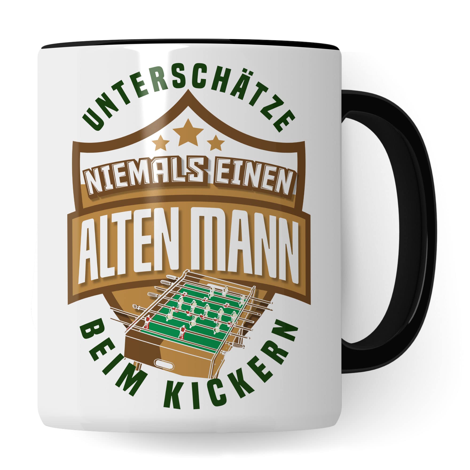 Tischkicker Tasse Geschenkidee Kicker Kaffeetasse Humor Witz Geschenk für alten Mann Kaffeebecher Opa Becher