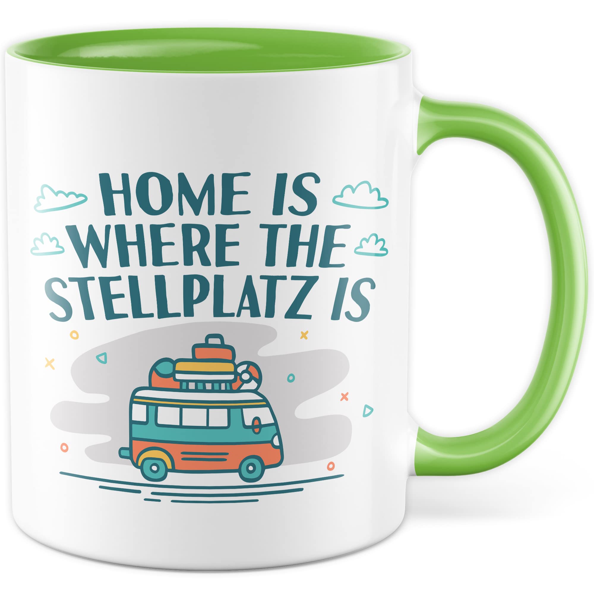 Wohnmobil Tasse Wohnwagen Kaffeetasse Camping Geschenk Camper Kaffee-Becher Stellplatz Geschenkidee Outdoorfans Camperin Campingvan Zeltplatz Campingwagen Campingplatz Zelten Home is Zuhause
