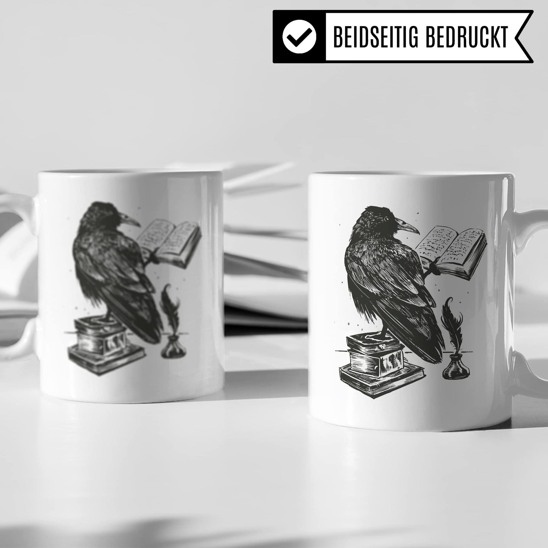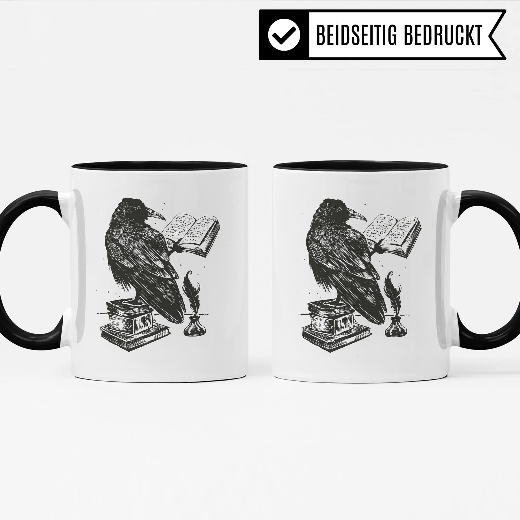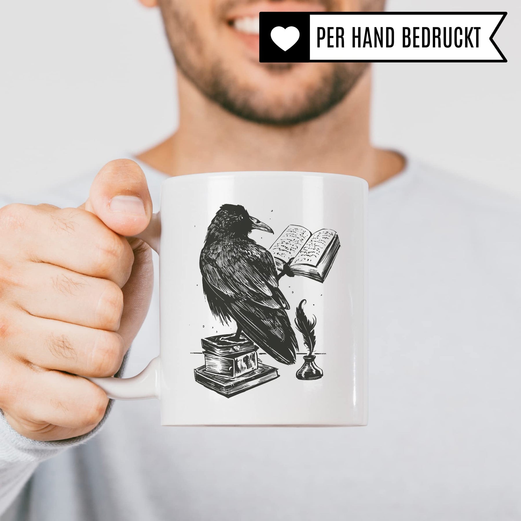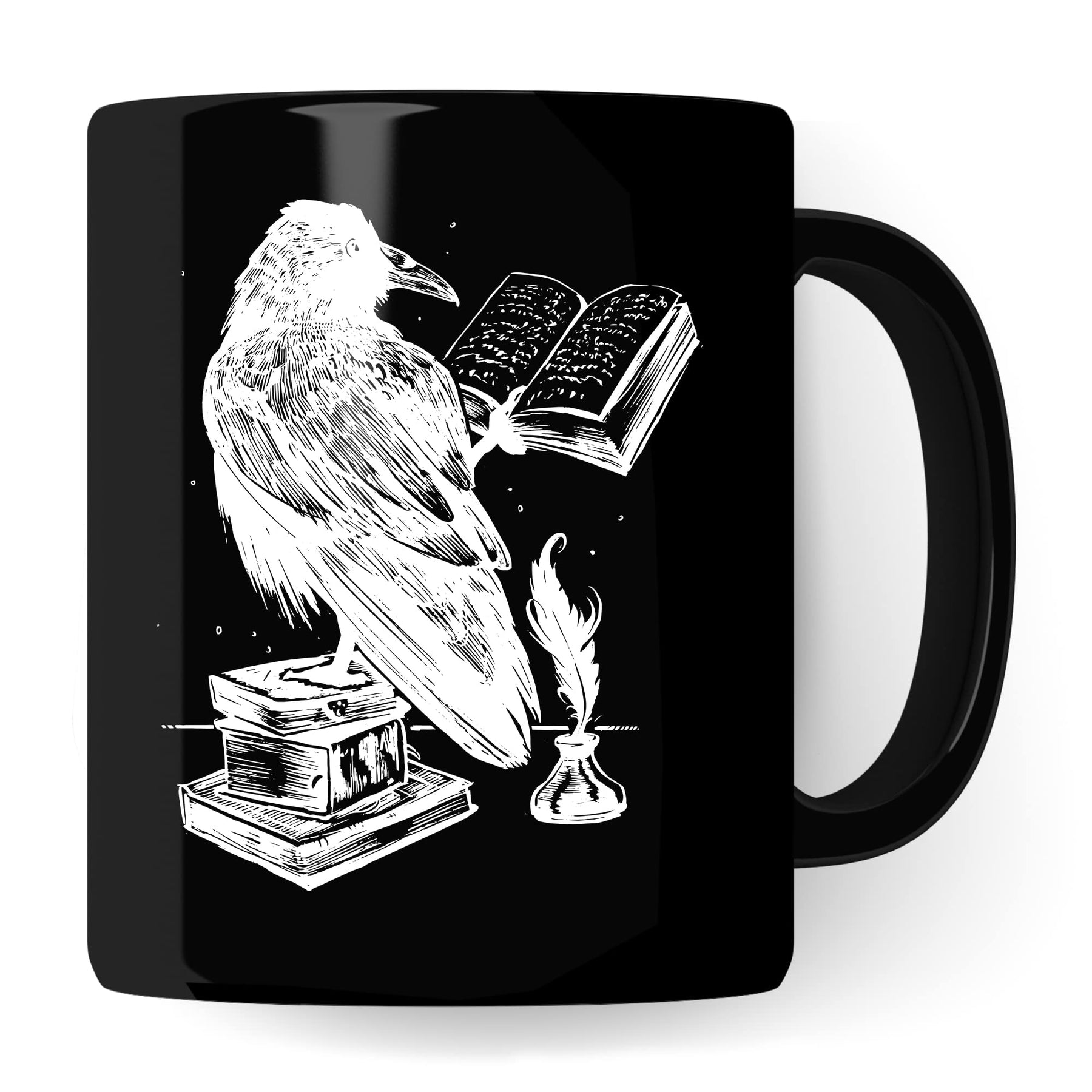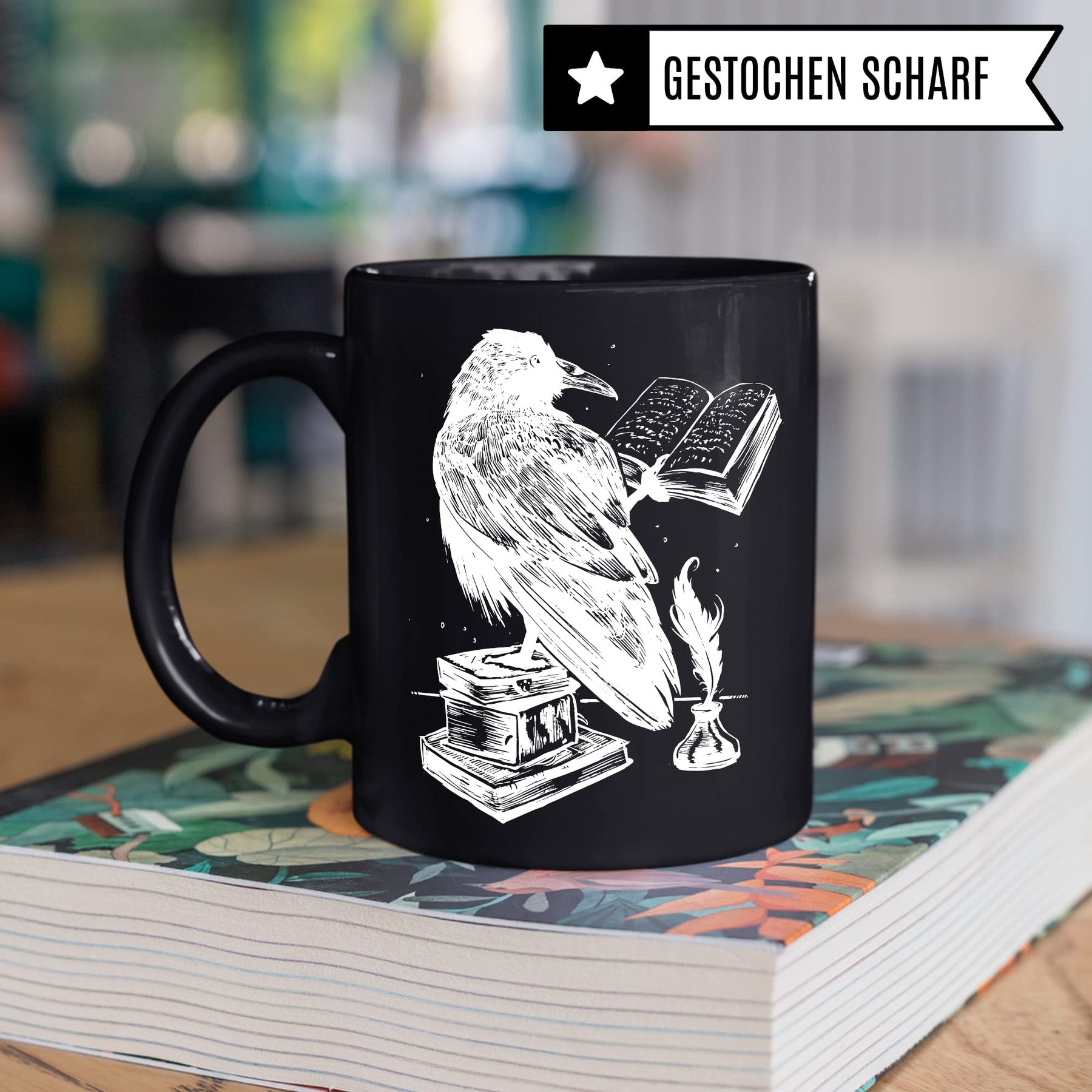 Bücher Tasse Raben Kaffeetasse Geschenk Bücherwurm Lesen Kaffee-Becher Leseratte Teetasse Geschenk Buch Bücherfan Geschenkidee Fantasy
