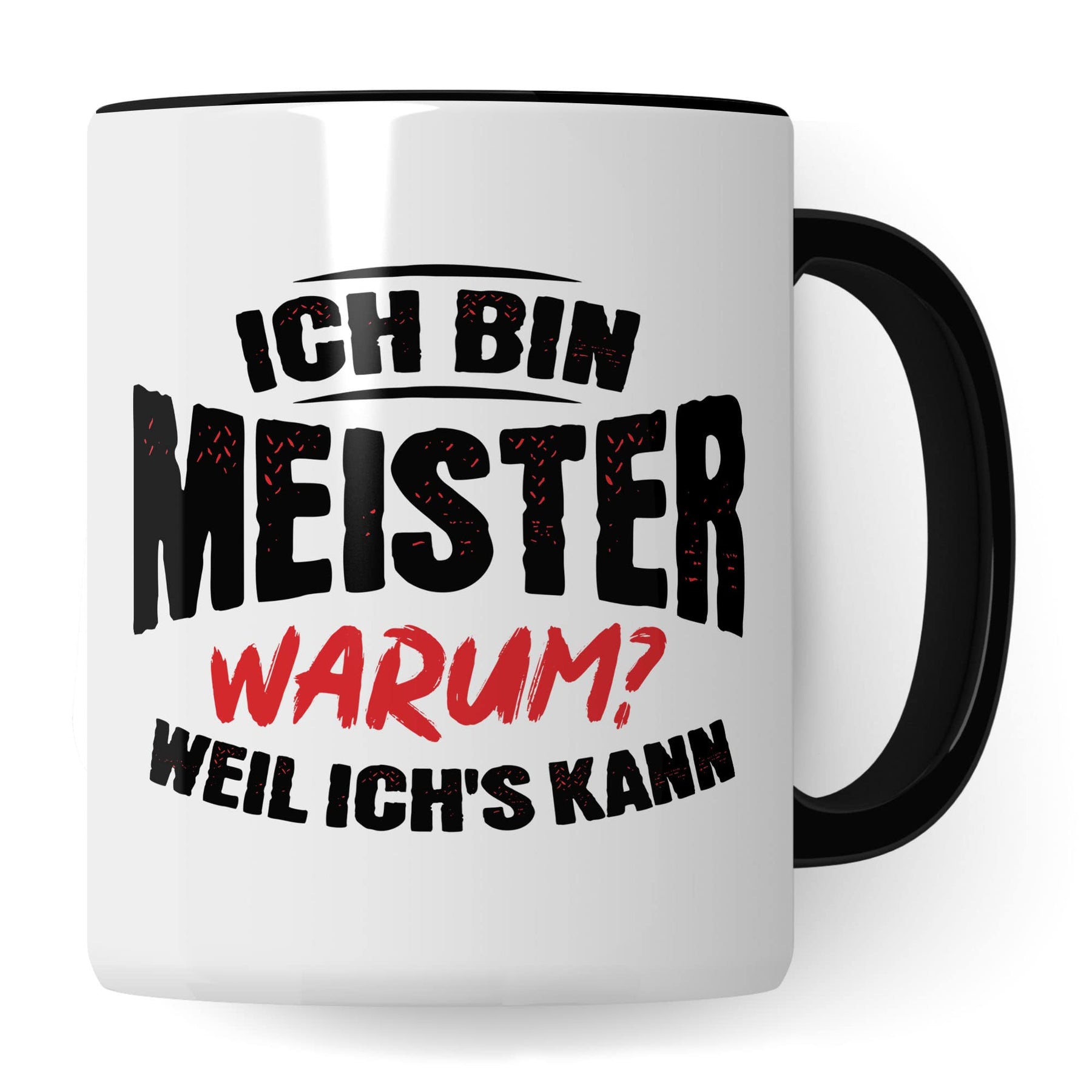 Meister Tasse Ich bin Meister Warum Weil Ichs kann Handwerksmeister Bestanden Meister-Prüfung Geschenk Kaffeetasse Geschenkidee Industriemeister Handwerker Kaffee-Becher
