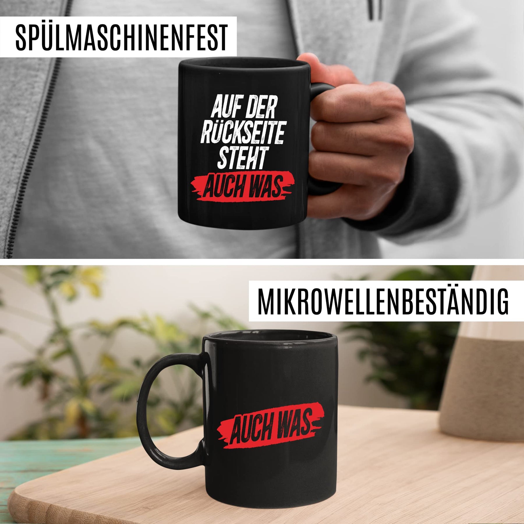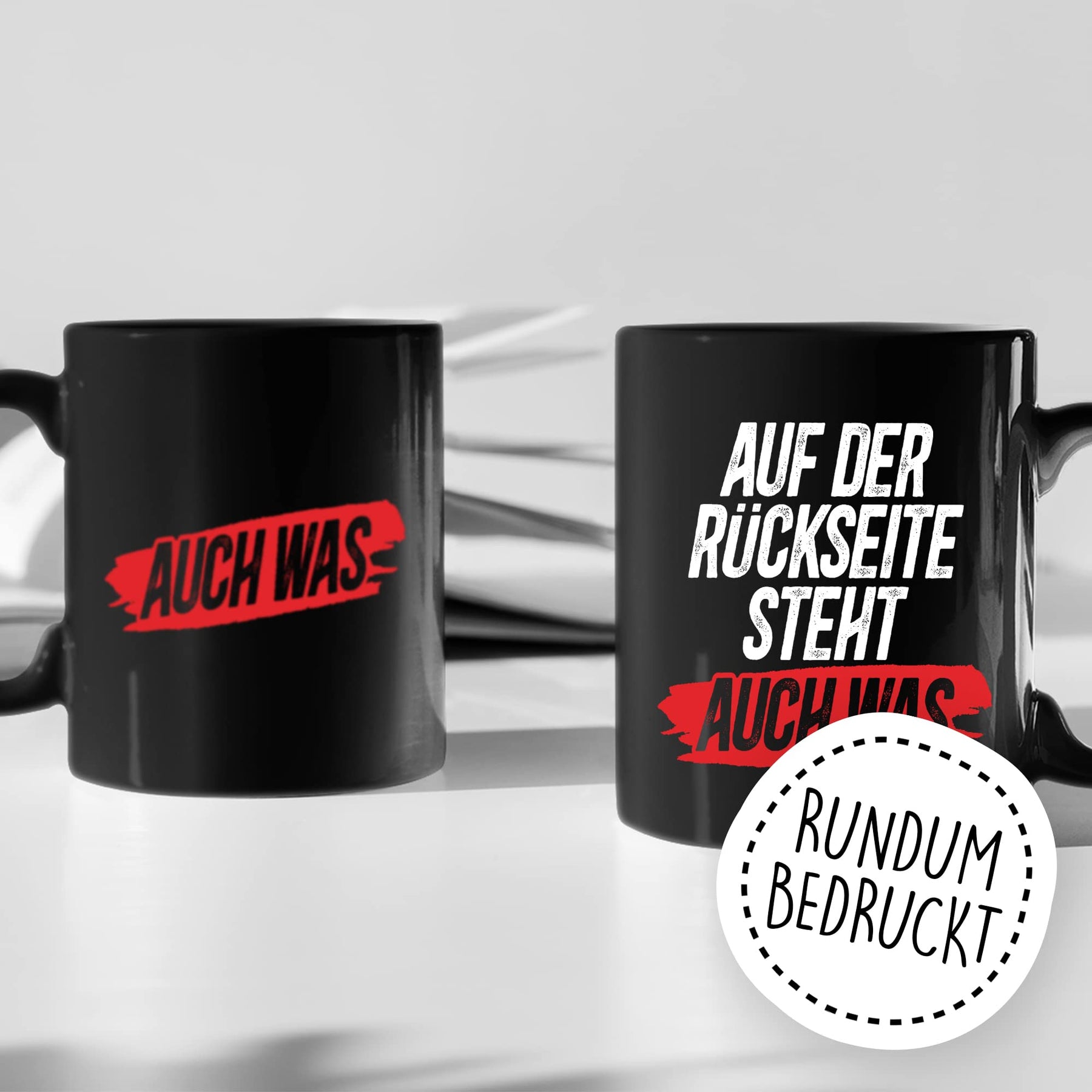 AUF DER RÜCKSEITE STEHT AUCH WAS. Super Kaffeetasse um mit dem witzigen Spruch eine Freude zu bereiten und ein Lächeln ins Gesicht zu zaubern. Egal ob für Freunde, Familie oder Kollegen optimal als Geschenk geeignet. Garantiert spülmaschinenfester Aufdruck - mit hochwertiger Sublimationstechnik bedruckt und deshalb besonders robust. Alle unsere Tassen werden zu 100% in Deutschland, zu fairen Bedingungen und mit Liebe bedruckt. Das ideale Geschenk, egal ob die Tasse als Kakaobecher, Kaffeetasse oder Kaffeebecher genutzt wird.