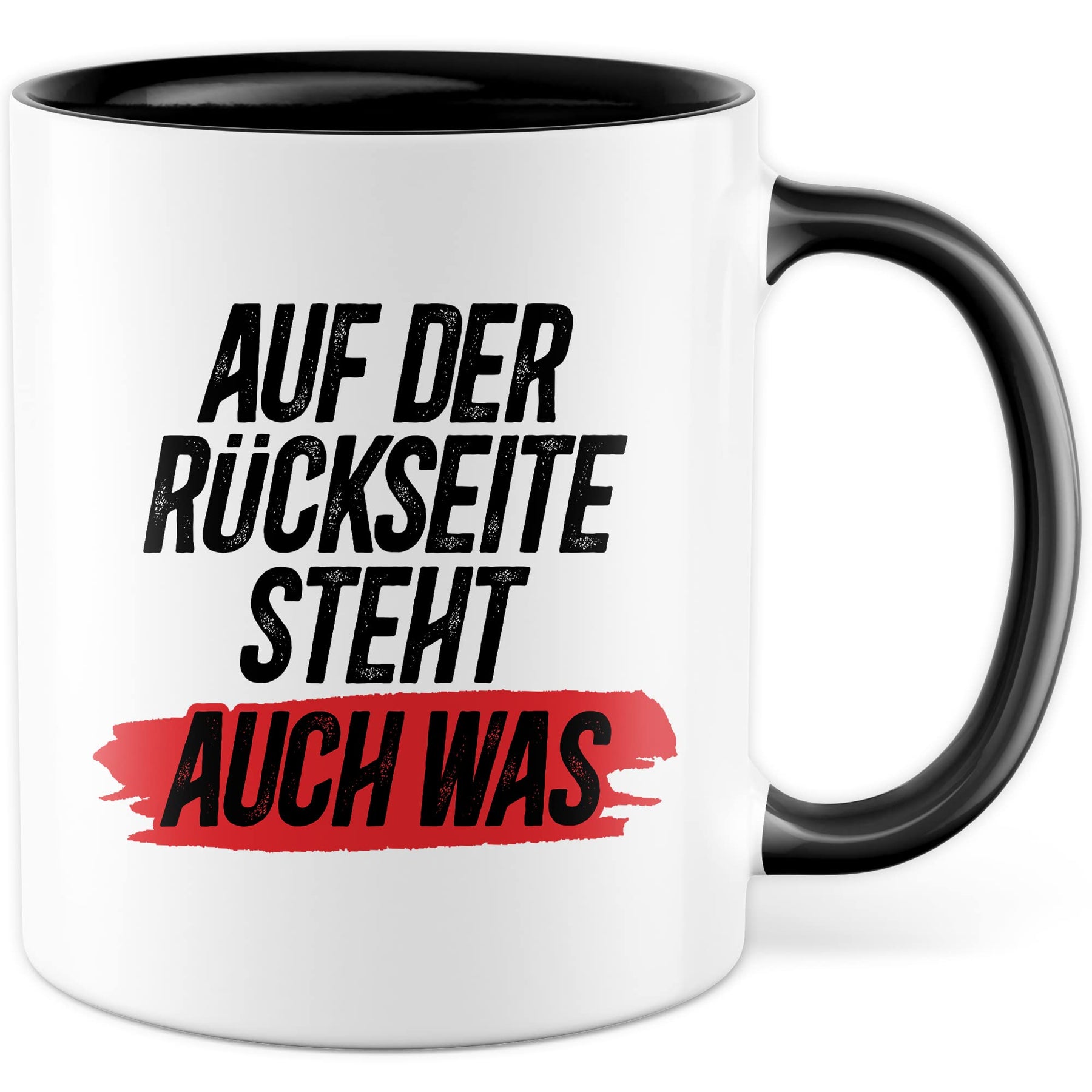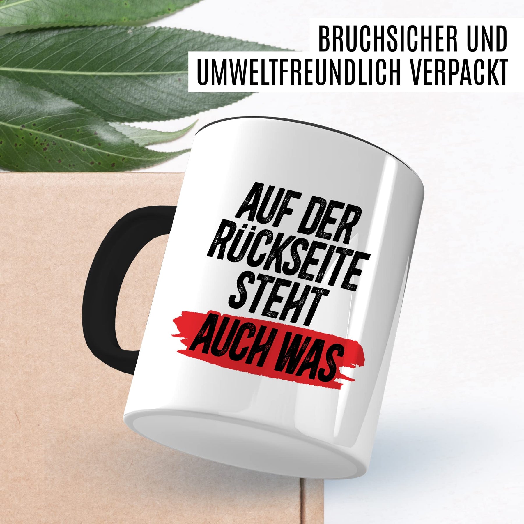 Tasse Spruch lustig, Auf der Rückseite steht auch was Tasse mit Spruch lustig Geschenk Geschnekidee Kaffee-Becher Kaffeetasse Humor Flachwitz Schenkelklopfer witzig