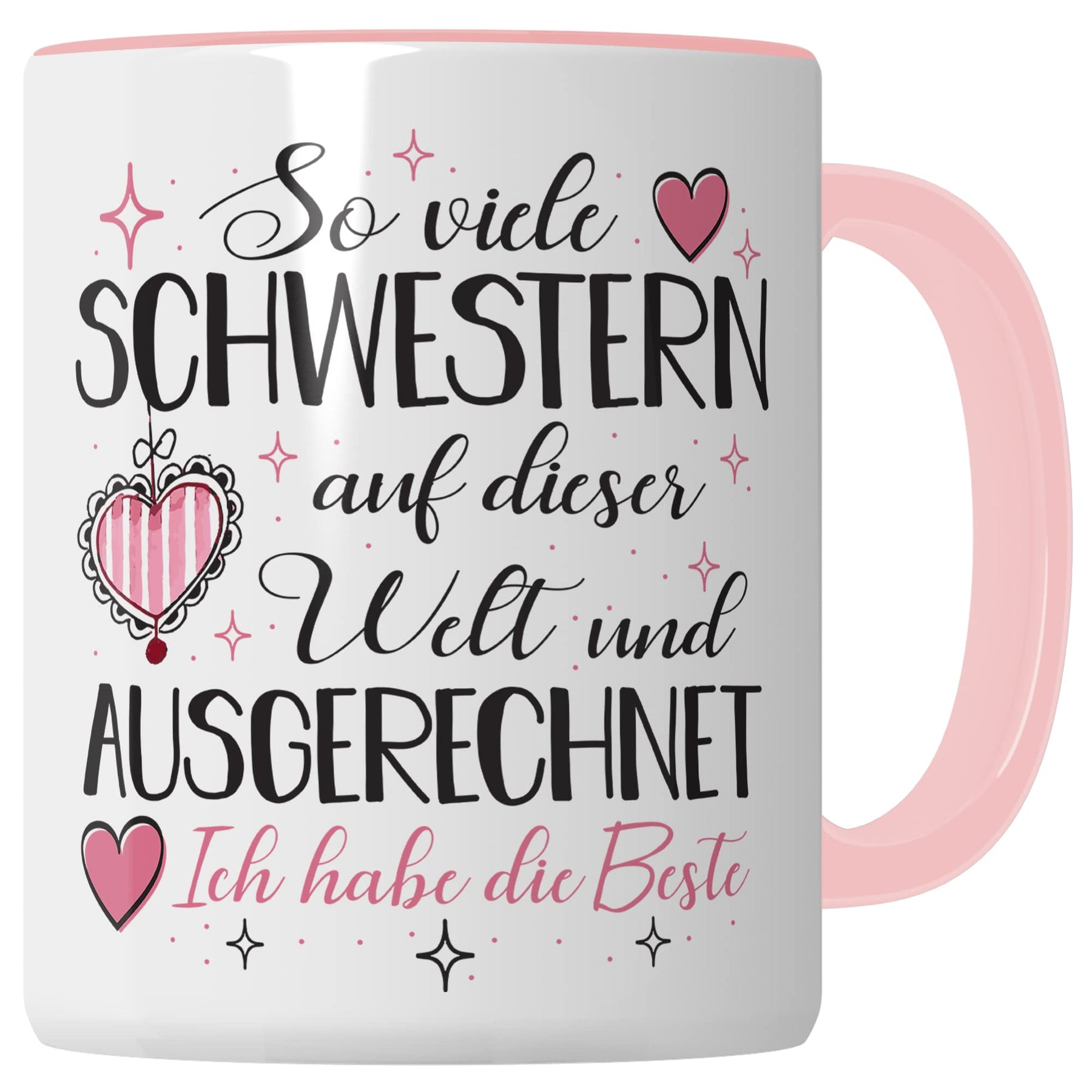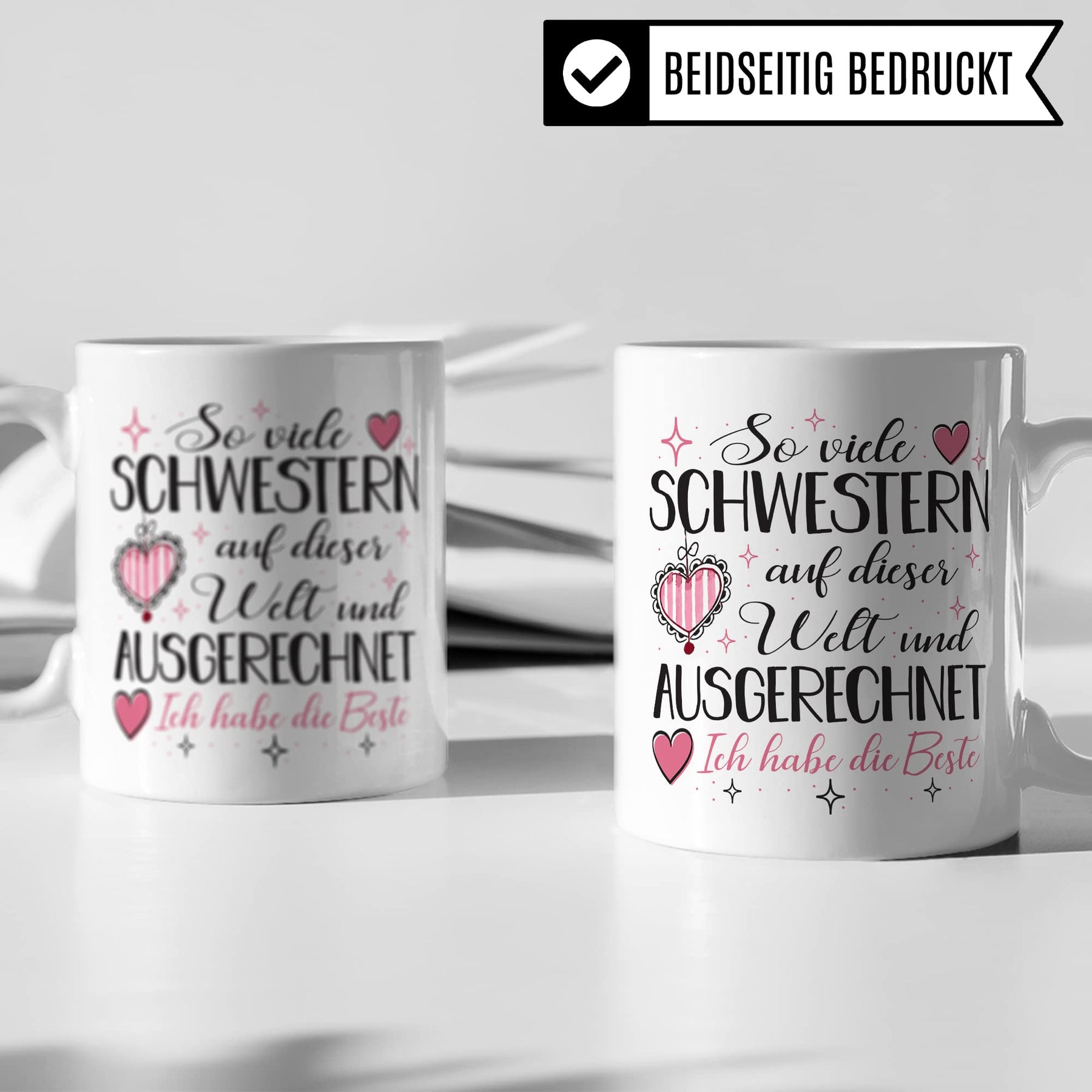 Tasse Schwester Geschenk, So viele Schwestern auf dieser Welt und ausgrechnet ich hab die Beste Geschenkidee Bruder Kaffee-Becher Kaffeetasse Tasse mit Spruch lustig Geschwister