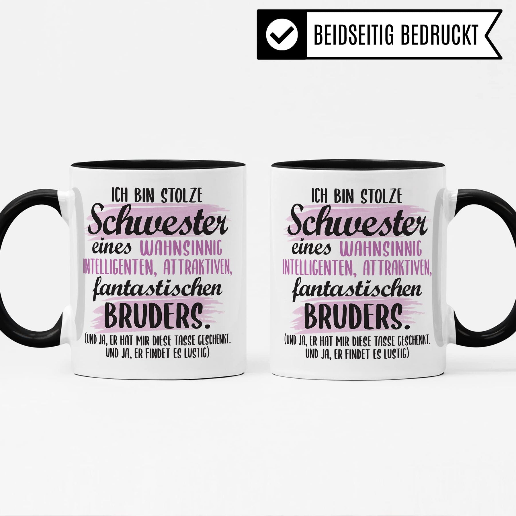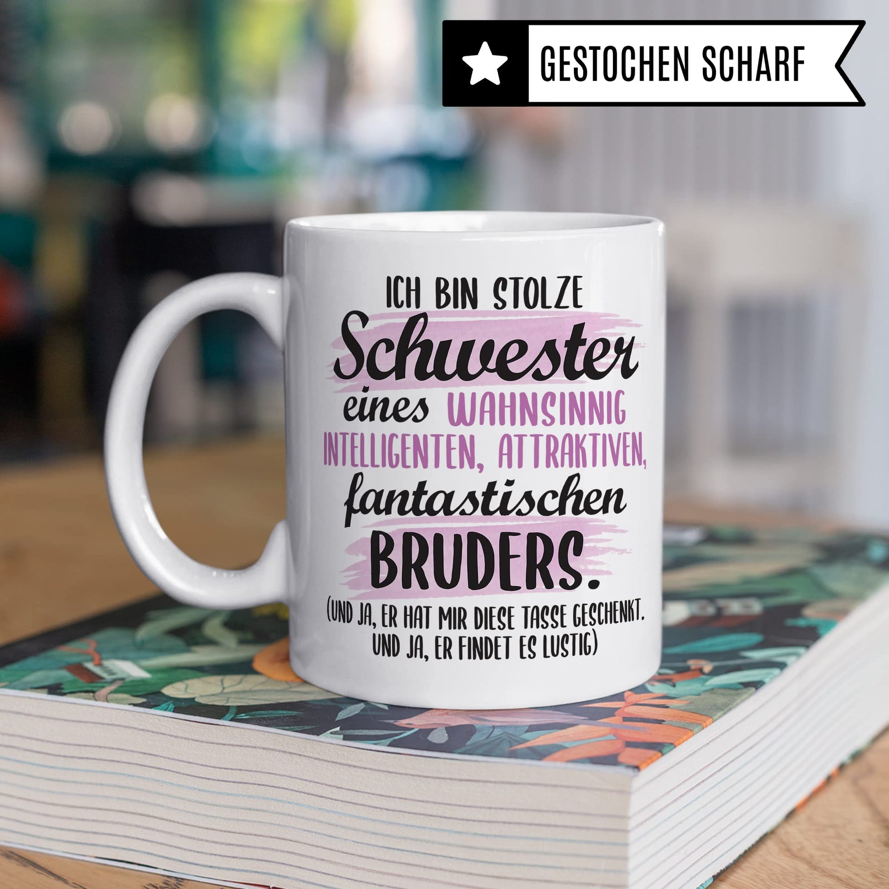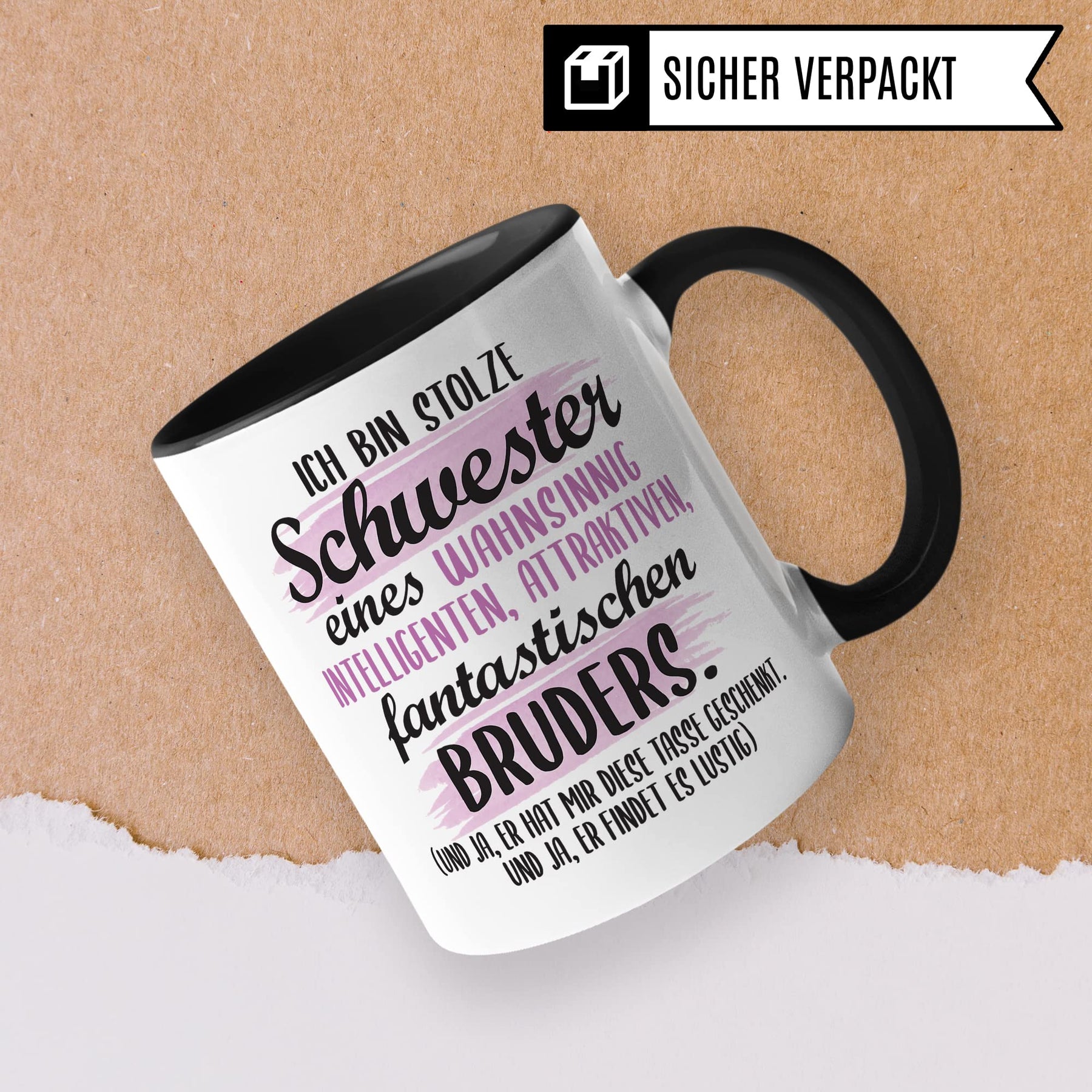 • ✅ ICH BIN STOLZE SCHWESTER eines wahnsinnig intelligenten attraktiven fantastischen Bruders Und ja er hat mir diese Tasse geschenkt Und ja er findet es lustig Tasse als Geschenk für den Bruder