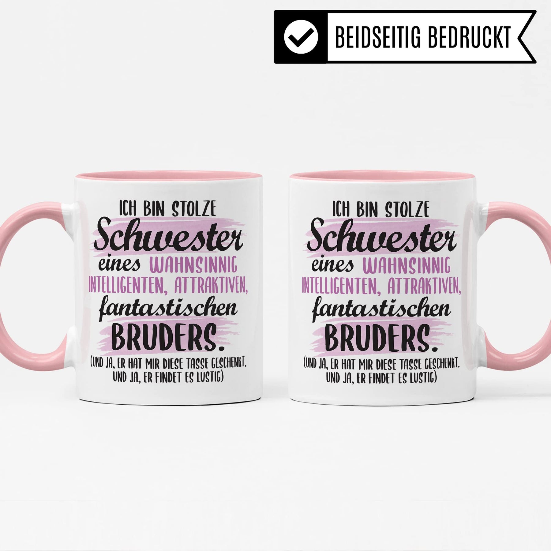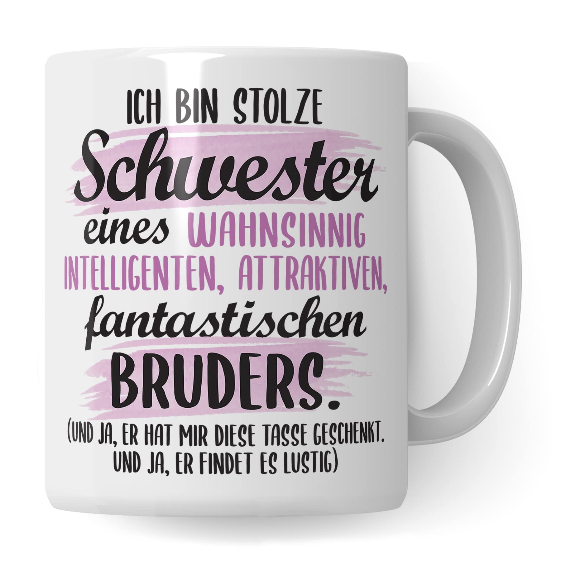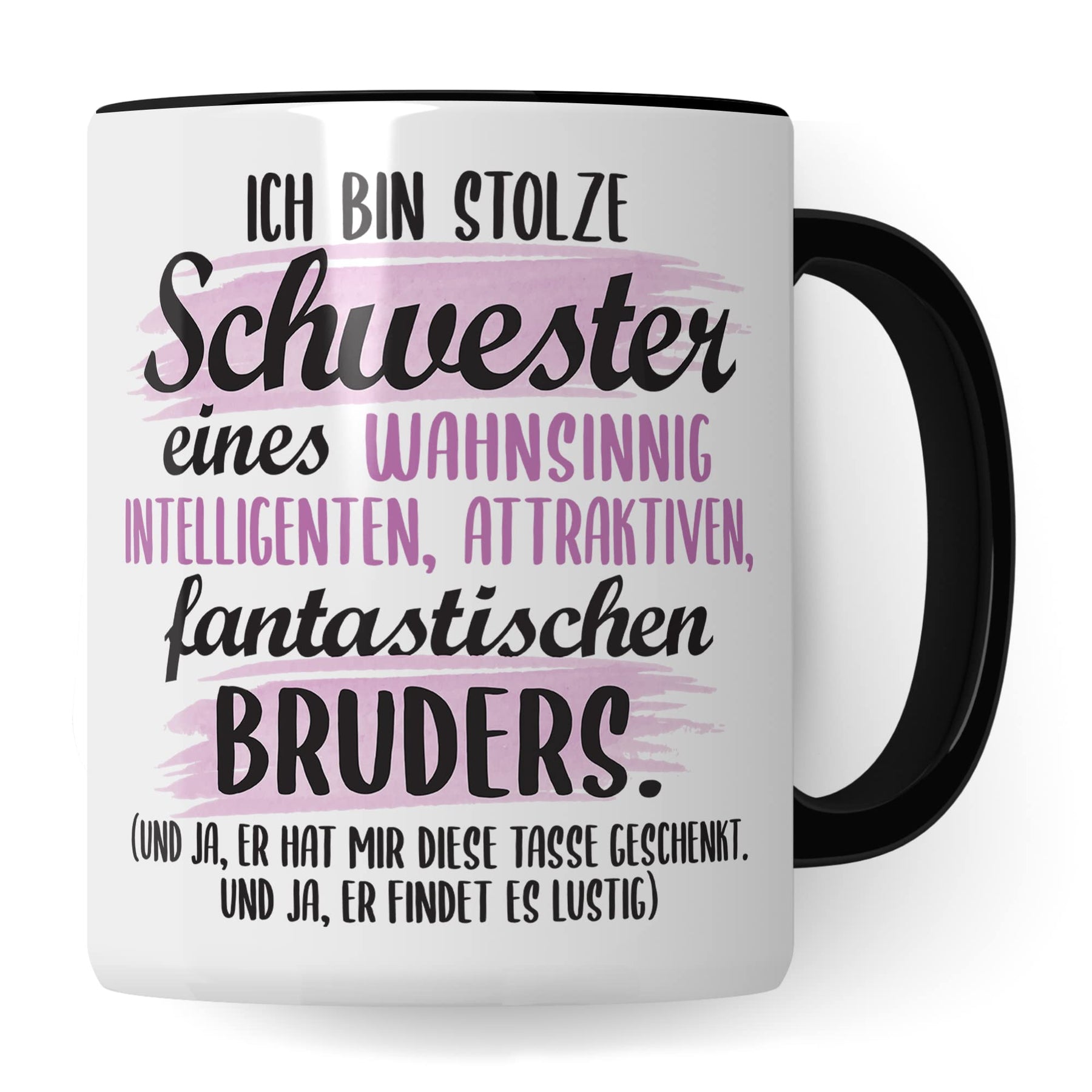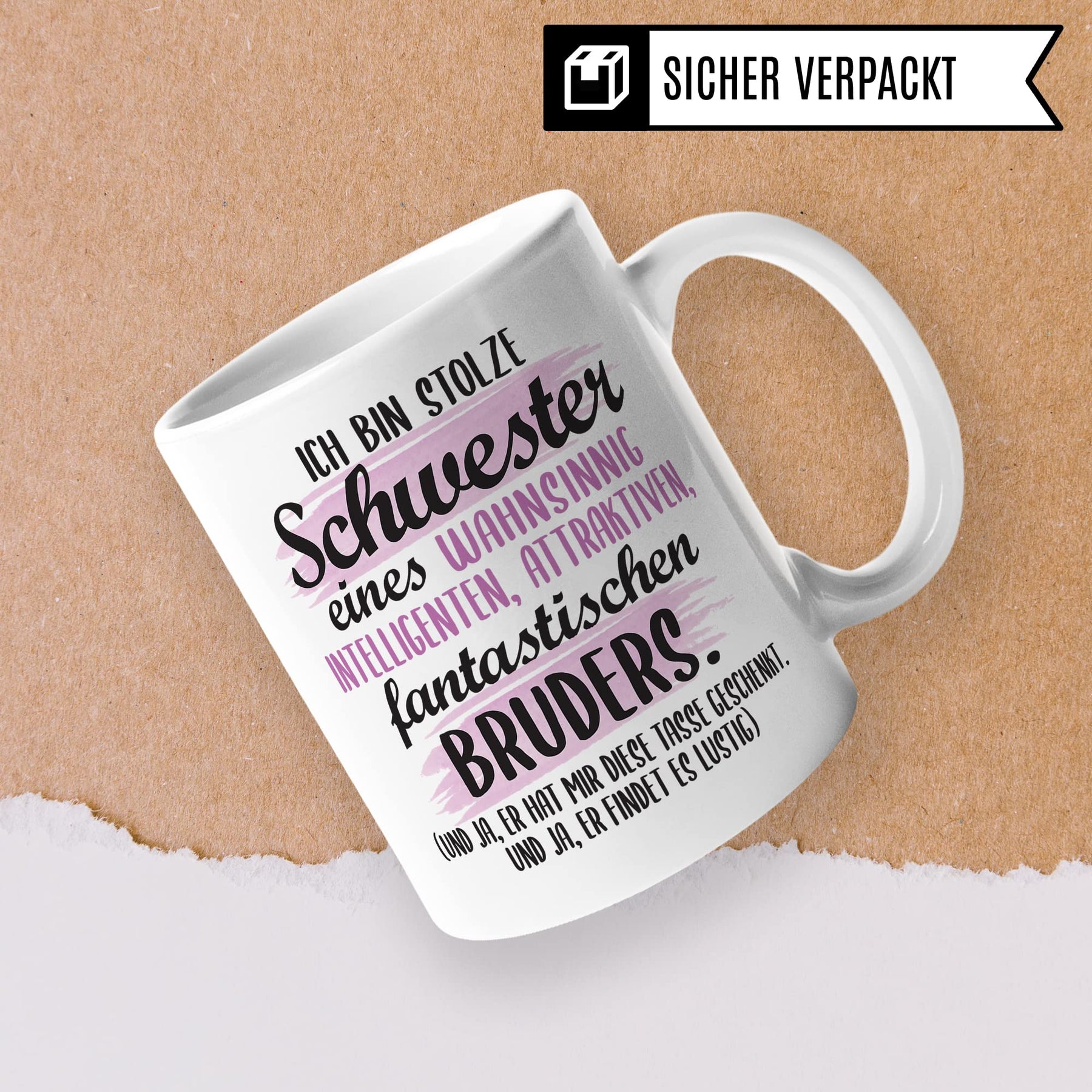 • ✅ ICH BIN STOLZE SCHWESTER eines wahnsinnig intelligenten attraktiven fantastischen Bruders Und ja er hat mir diese Tasse geschenkt Und ja er findet es lustig Tasse als Geschenk für den Bruder